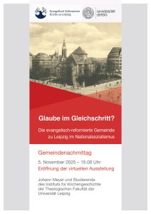 Ein Semester lang haben Studierende der Theologischen Fakultät der Universität Leipzig mit M. Ed. Johann Meyer (Kirchengeschichte) die Geschichte der evangelisch-reformierten Gemeinde zu Leipzig im Nationalsozialismus erforscht. Aus der Arbeit mit Archivmaterial und Literatur ist eine virtuelle Ausstellung entstanden.